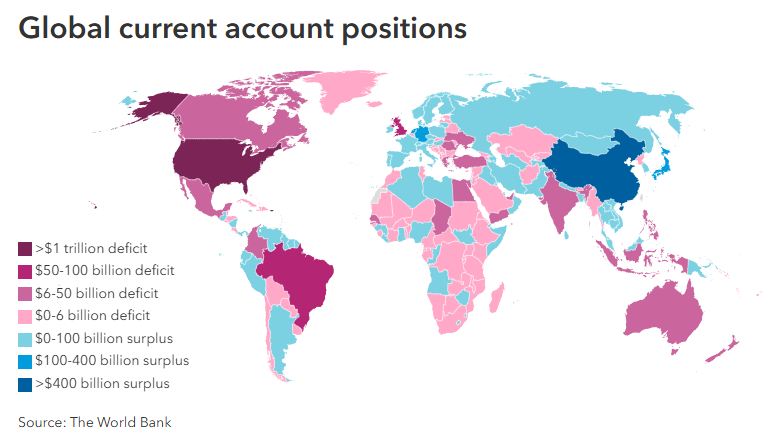 Through its tariff policy, the US administration is attempting to correct fundamental trade imbalances with the rest of the world. The US has the largest current account deficit globally, while countries such as China, Germany, and Japan boast meaningful surpluses.